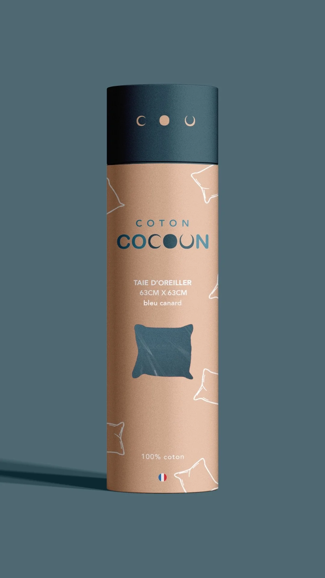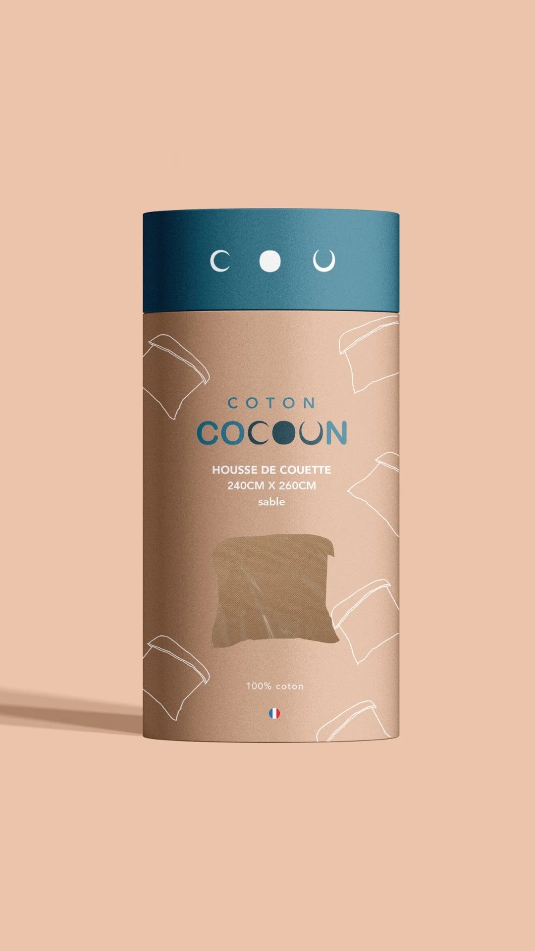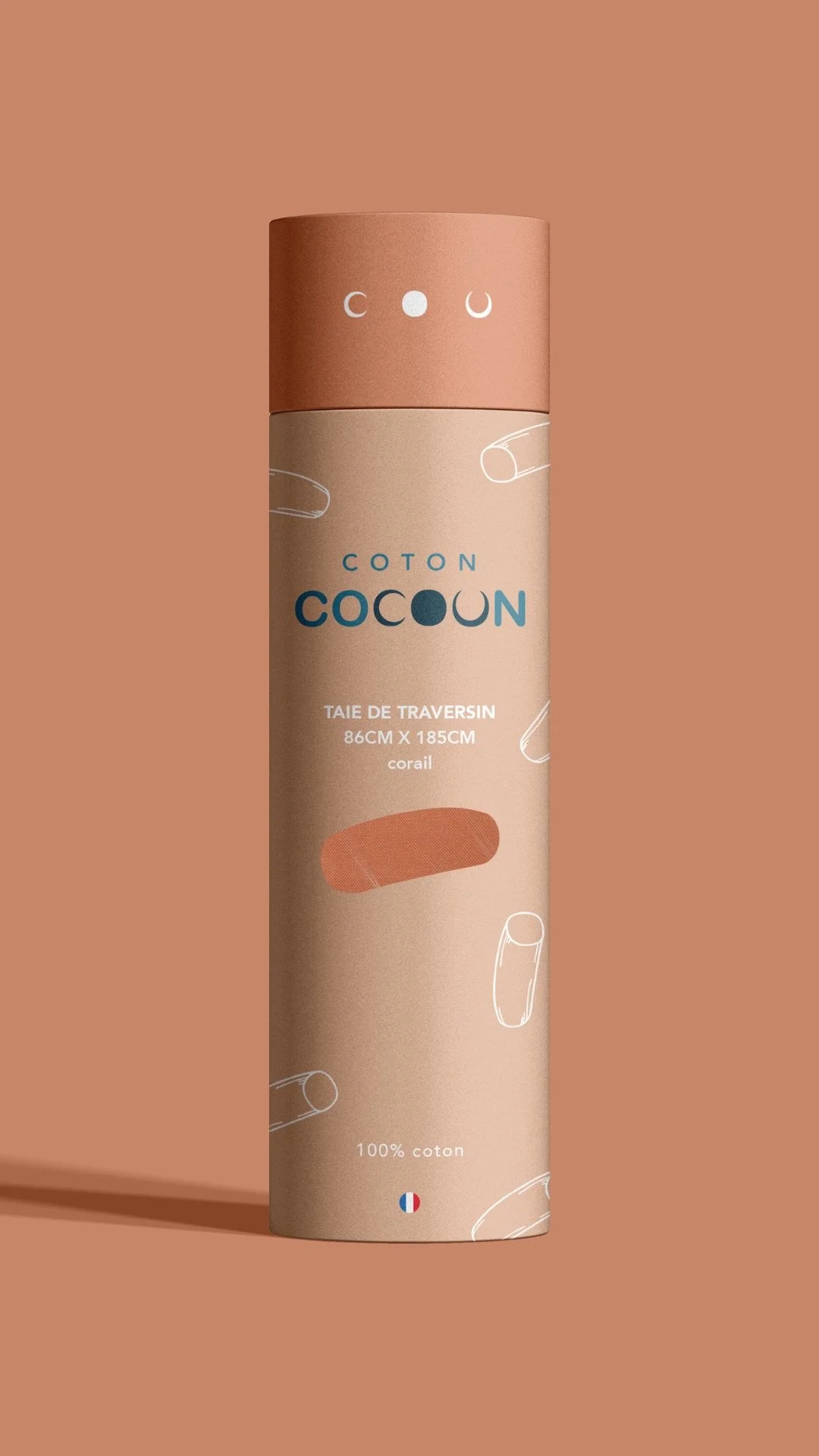 Le terme « COTON » fait référence à la matière coton des produits et le terme « COCOON » symbolise le cocon qu’inspirent les draps d’un lit et a un lien avec la notion du « cocooning ». Pour les couleurs, je suis partie sur une palette de quatre couleurs assez douces et délicates qui s'adaptent parfaitement à l'esprit de relaxation que je souhaite véhiculer à travers cette marque.